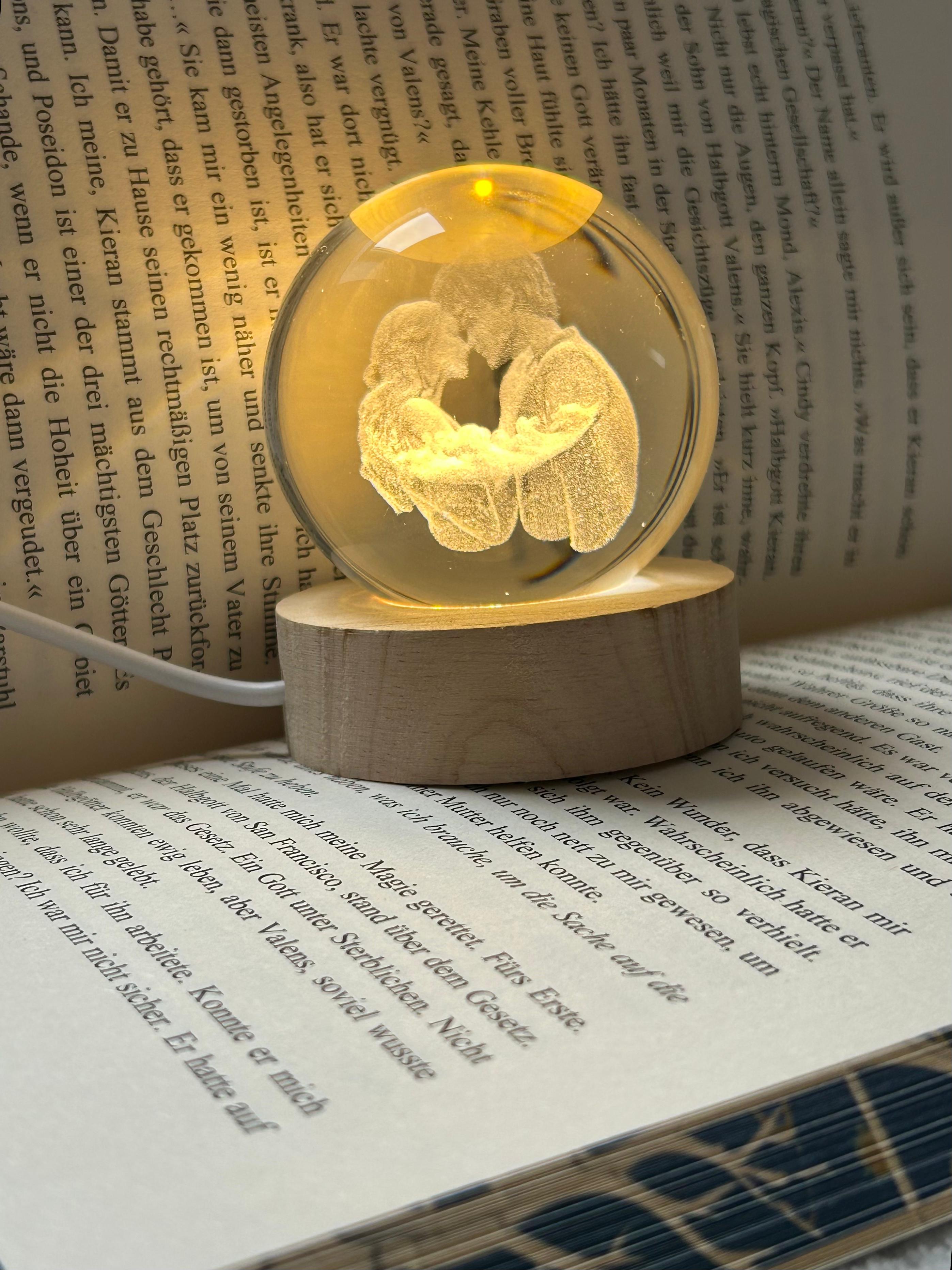 Unsere Kristallkugel mit einem eingravierten Bild von Keiran und Alexis! Für echte (und nicht so echte) Wahrsager.